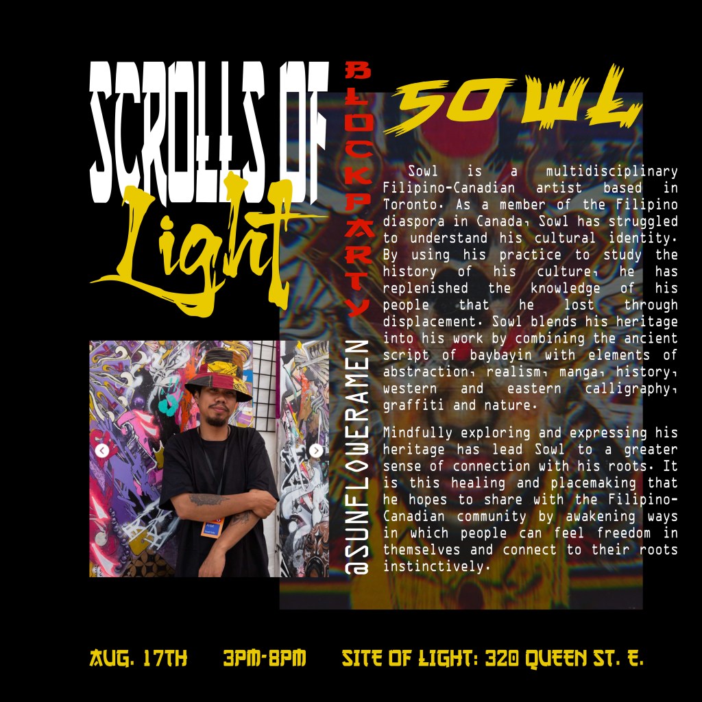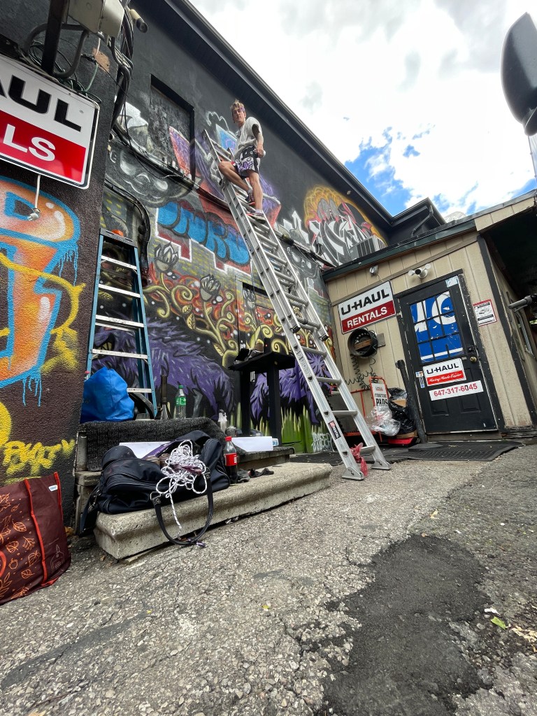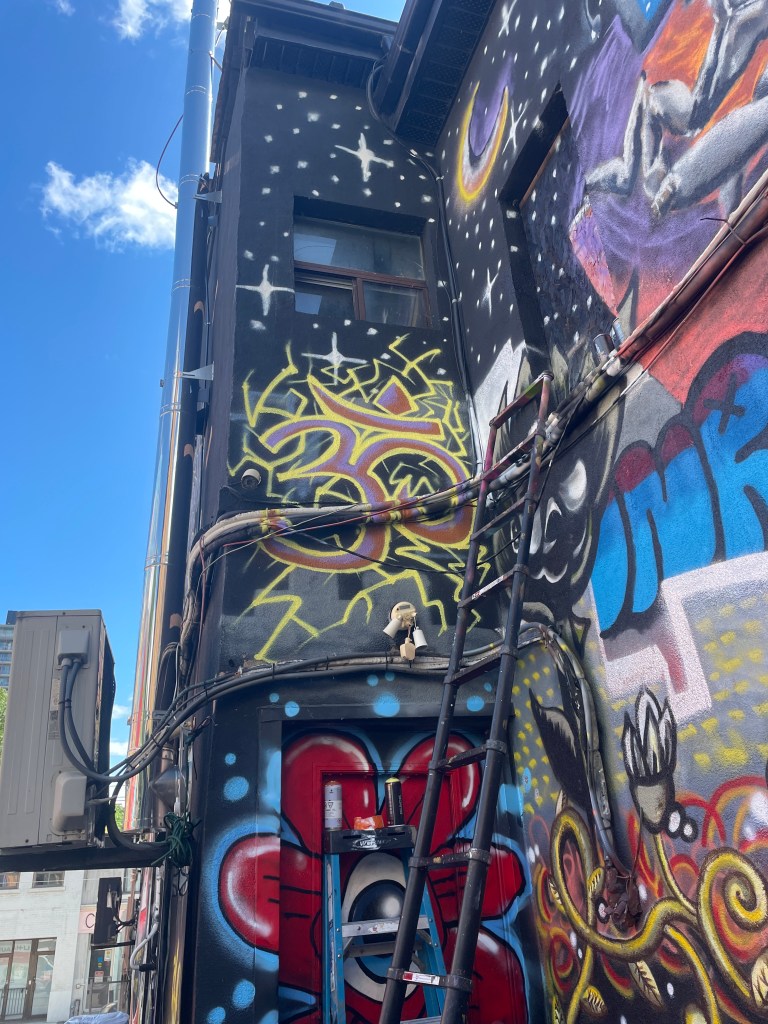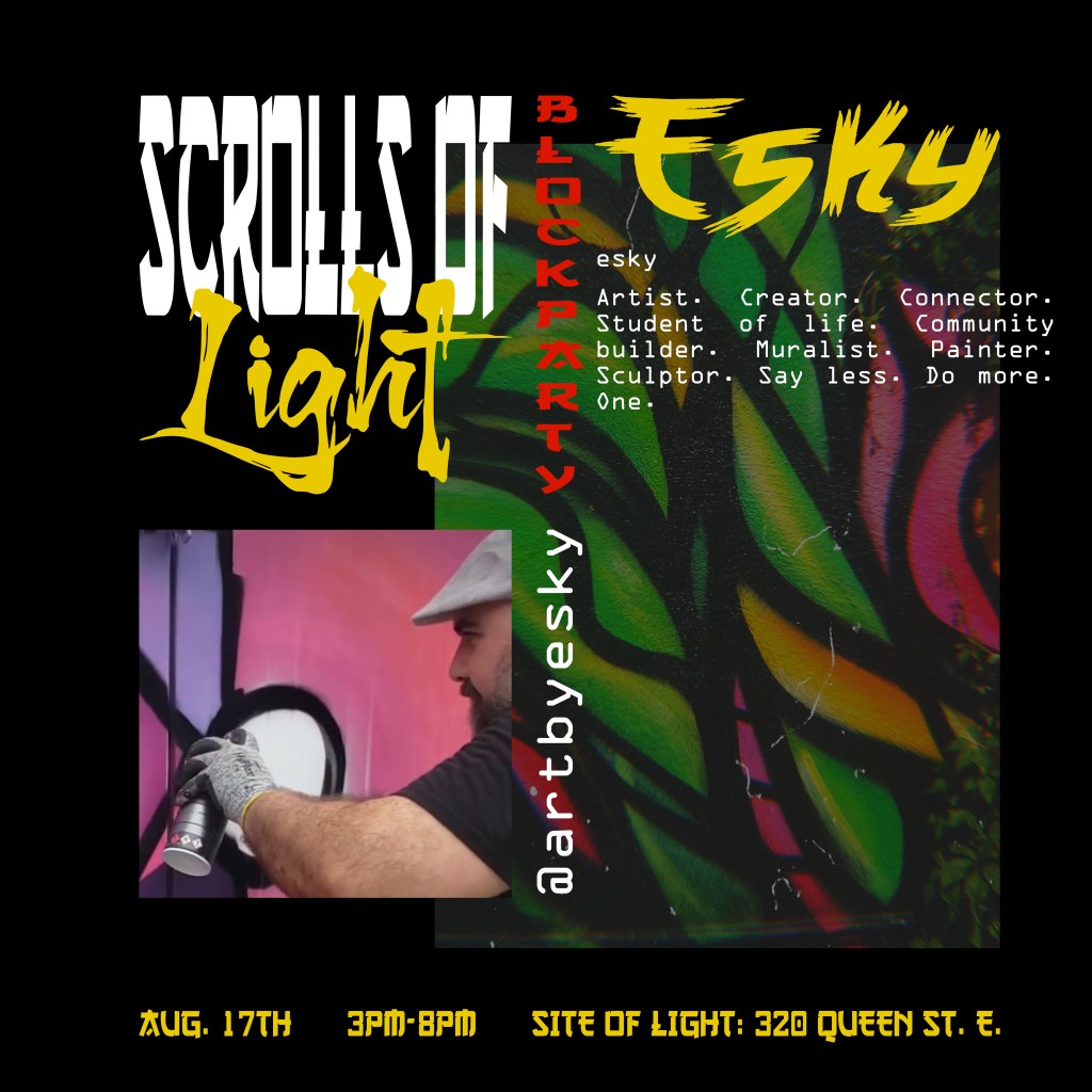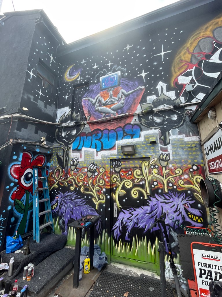 In the summer of 2024, I got blessed with the opportunity to be a part of a collaborative mural project lead by Flips da Swirl God (@flipsbsc and Sowl (@sunfloweramen). A total of 16 of the city’s best artists came together and contributed to adding life & depth to an unsuspecting uHaul lot at the intersection of Queen and Parliament. With themes of peace and unity, we each created and exacted our visions. Adding a glorious street gallery and showcase to the neighborhood.