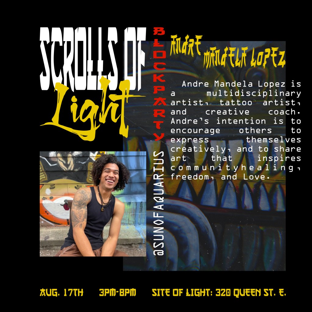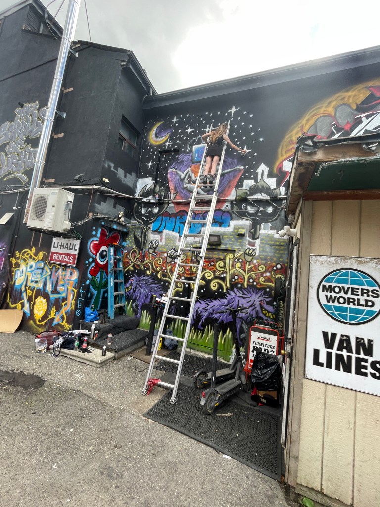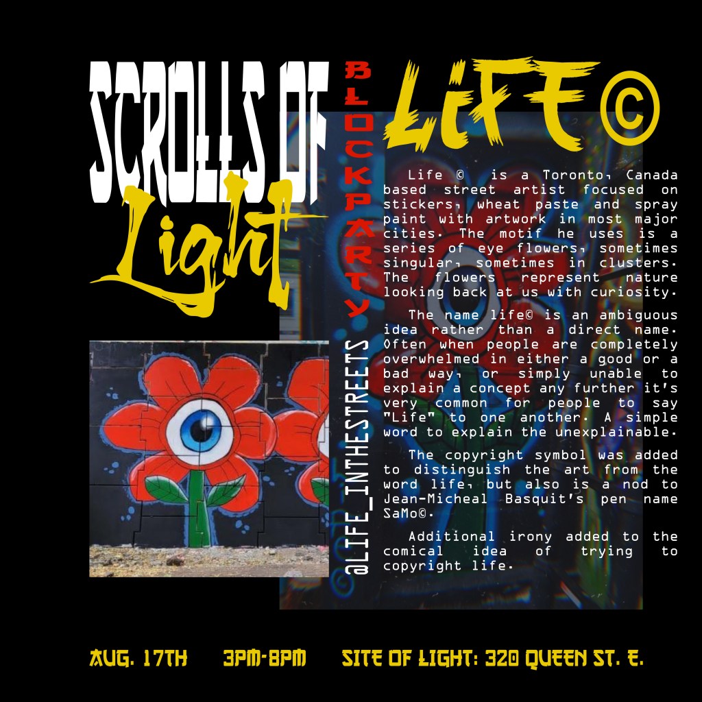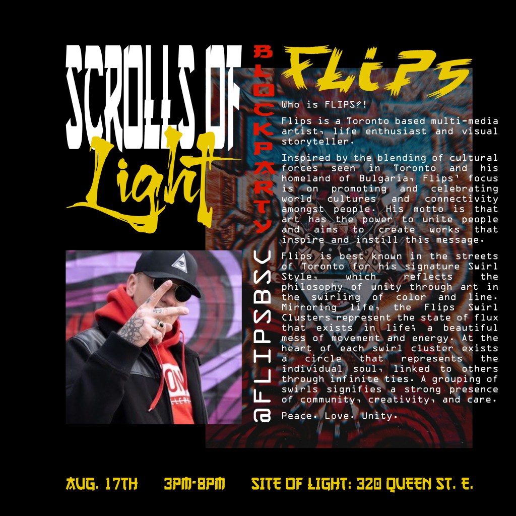 In the summer of 2024, I got blessed with the opportunity to be a part of a collaborative mural project lead by Flips da Swirl God (@flipsbsc and Sowl (@sunfloweramen). A total of 16 of the city’s best artists came together and contributed to adding life & depth to an unsuspecting uHaul lot at the intersection of Queen and Parliament. With themes of peace and unity, we each created and exacted our visions. Adding a glorious street gallery and showcase to the neighborhood.