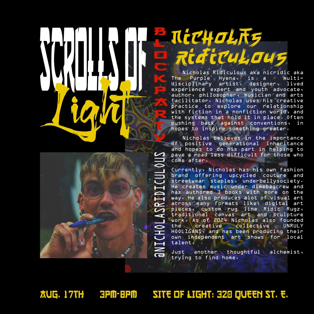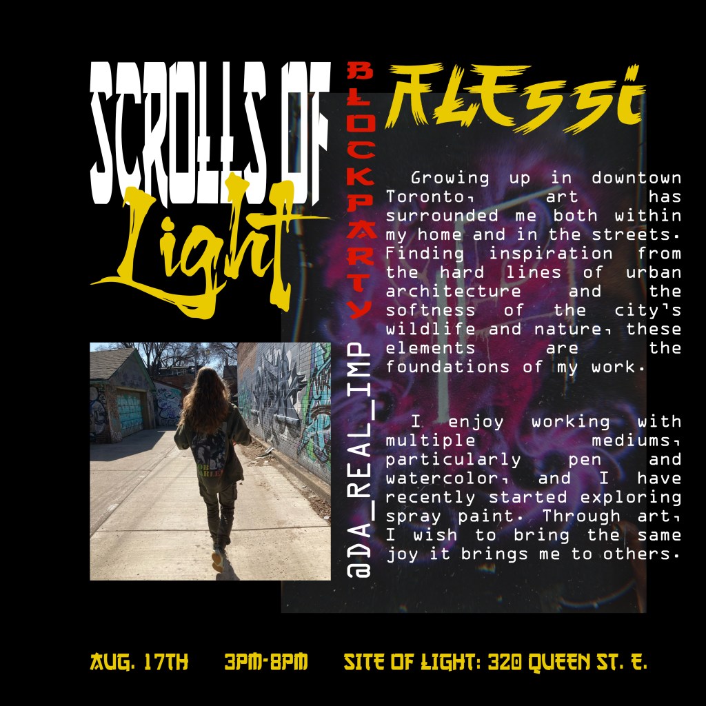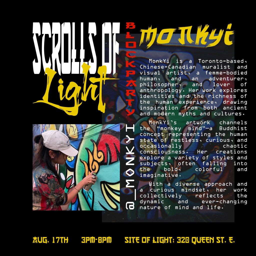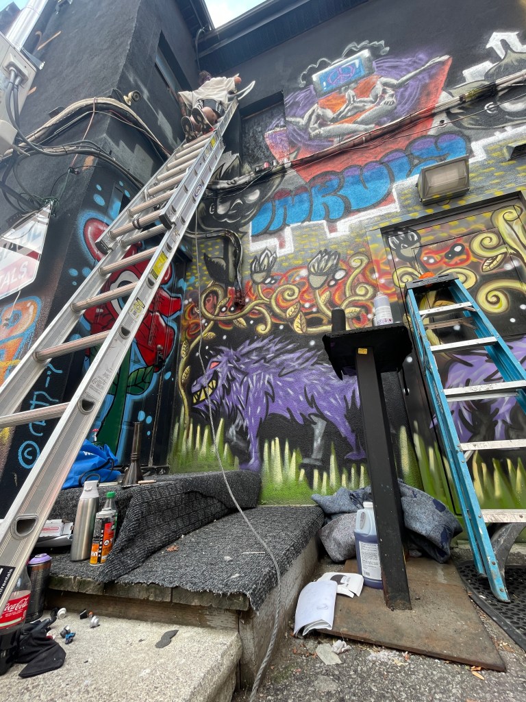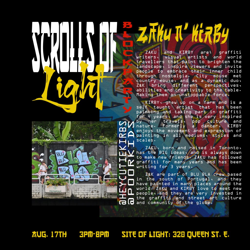 In the summer of 2024, I got blessed with the opportunity to be a part of a collaborative mural project lead by Flips da Swirl God (@flipsbsc and Sowl (@sunfloweramen). A total of 16 of the city’s best artists came together and contributed to adding life & depth to an unsuspecting uHaul lot at the intersection of Queen and Parliament. With themes of peace and unity, we each created and exacted our visions. Adding a glorious street gallery and showcase to the neighborhood.